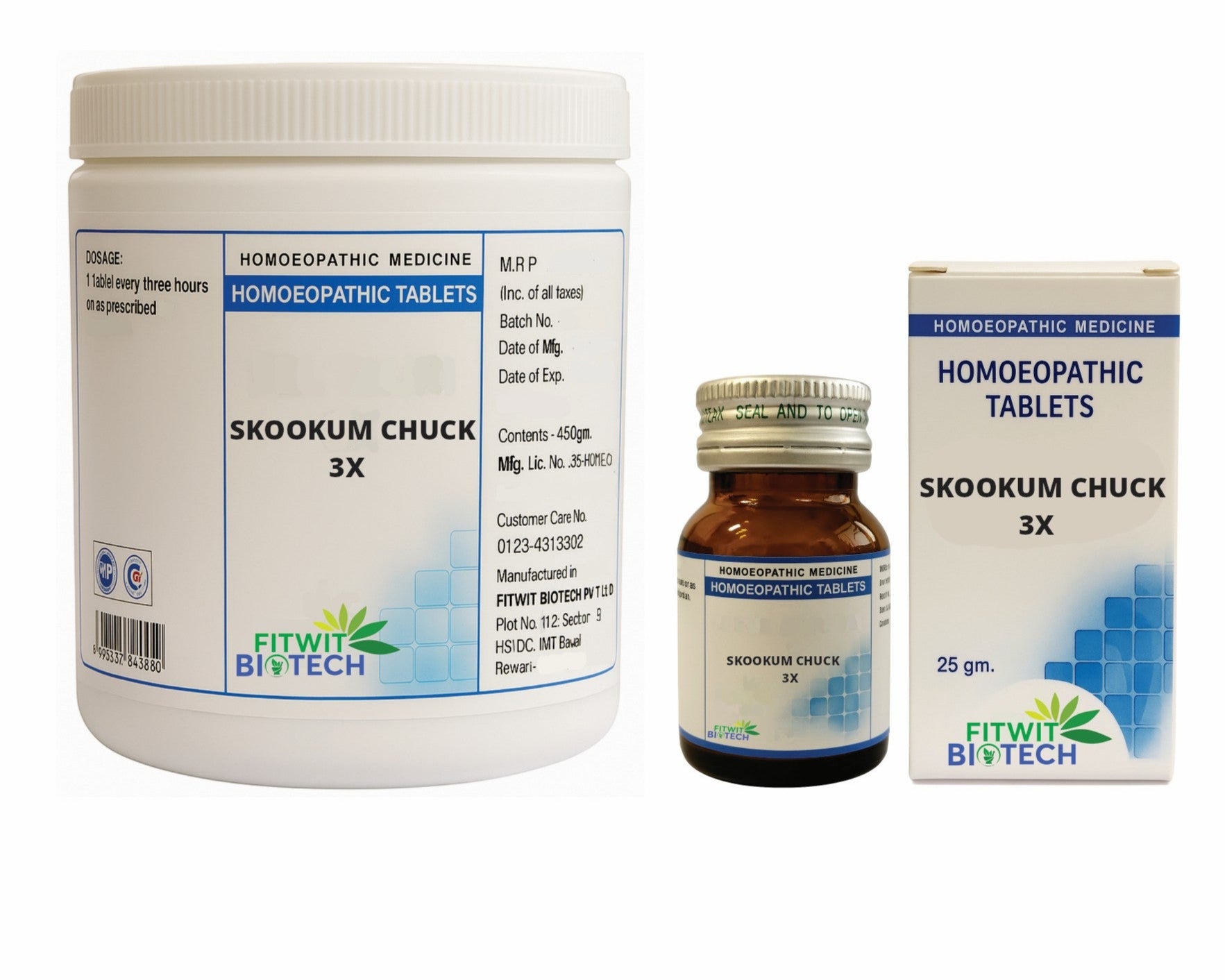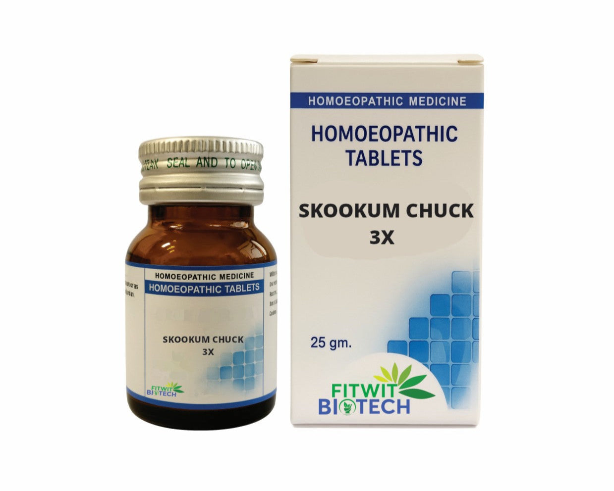 Regular price From Rs. 150.00Sale price From Rs. 150.00 Regular priceUnit price perSale Sold outFitwit Biotech's Skookum Chuck 3X Trituration Tablet is an effective homoeopathic medicine that relieves skin dryness, scaly skin, eczema, psoriasis and other skin diseases.