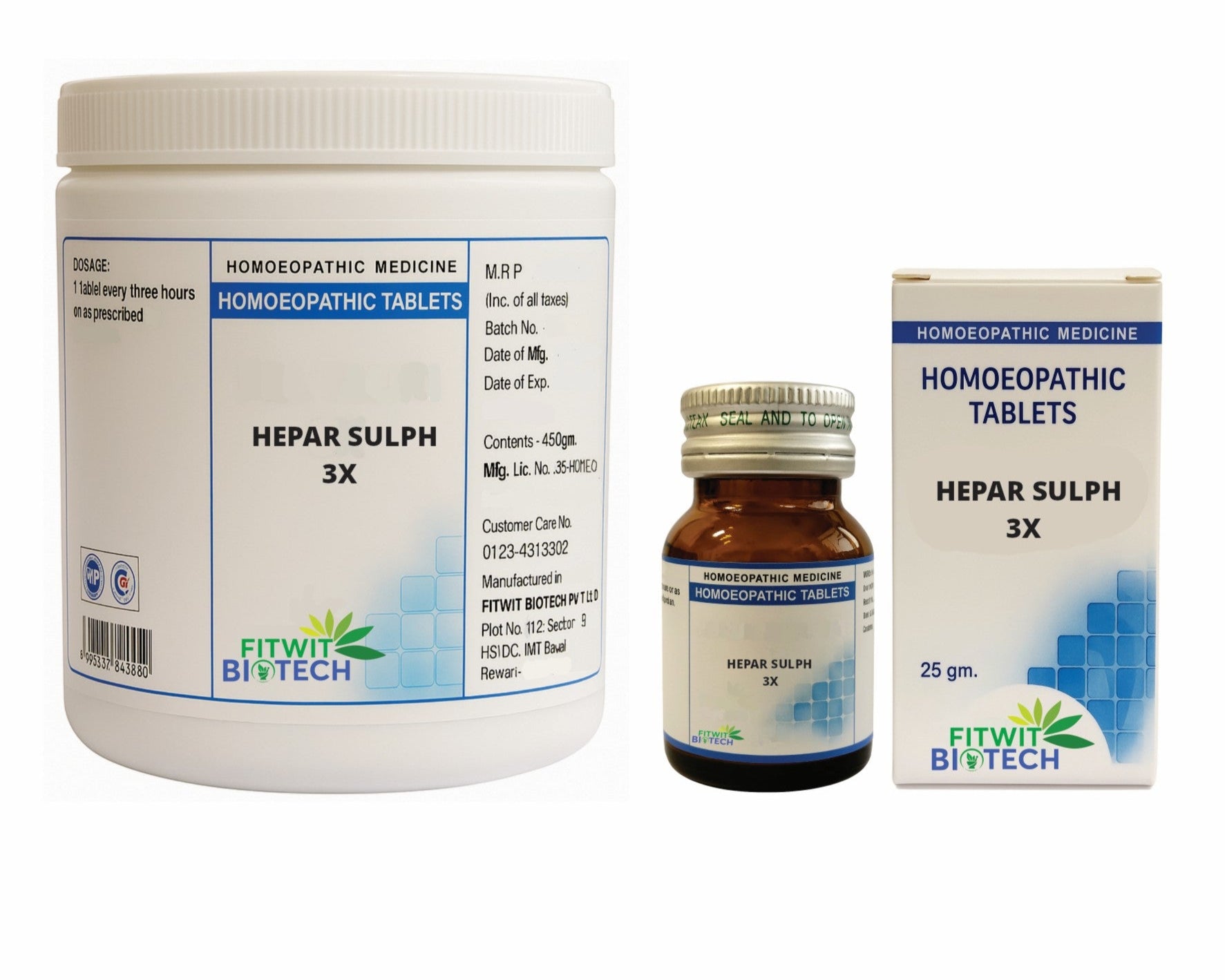 Regular price From Rs. 150.00Sale price From Rs. 150.00 Regular priceUnit price perSale Sold outFitwit Biotech's Hepar Sulph 3X Trituration Tablet is helpful against glandular inflammation and eruptions. It relieves bleeding from the mouth and is effective against mouth and...