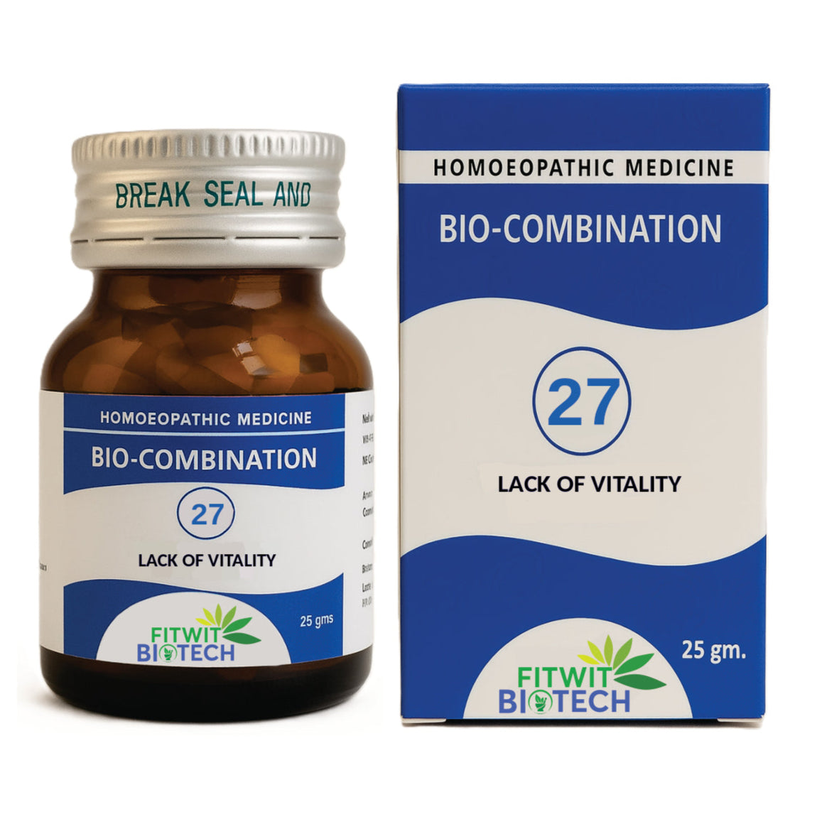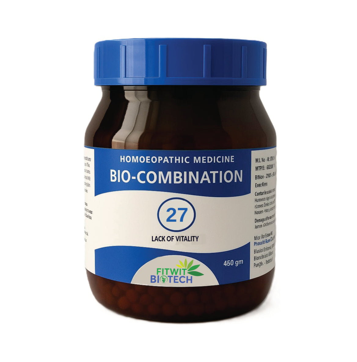 Regular price From Rs. 90.00Sale price From Rs. 90.00 Regular priceUnit price perSale Sold outFitwit Biotech Bio Combinationno.27 LACK OF VITALITY is a homoeopathic medicine that is useful in the treatment of weakness and debility. Bio combination 27 contains a...