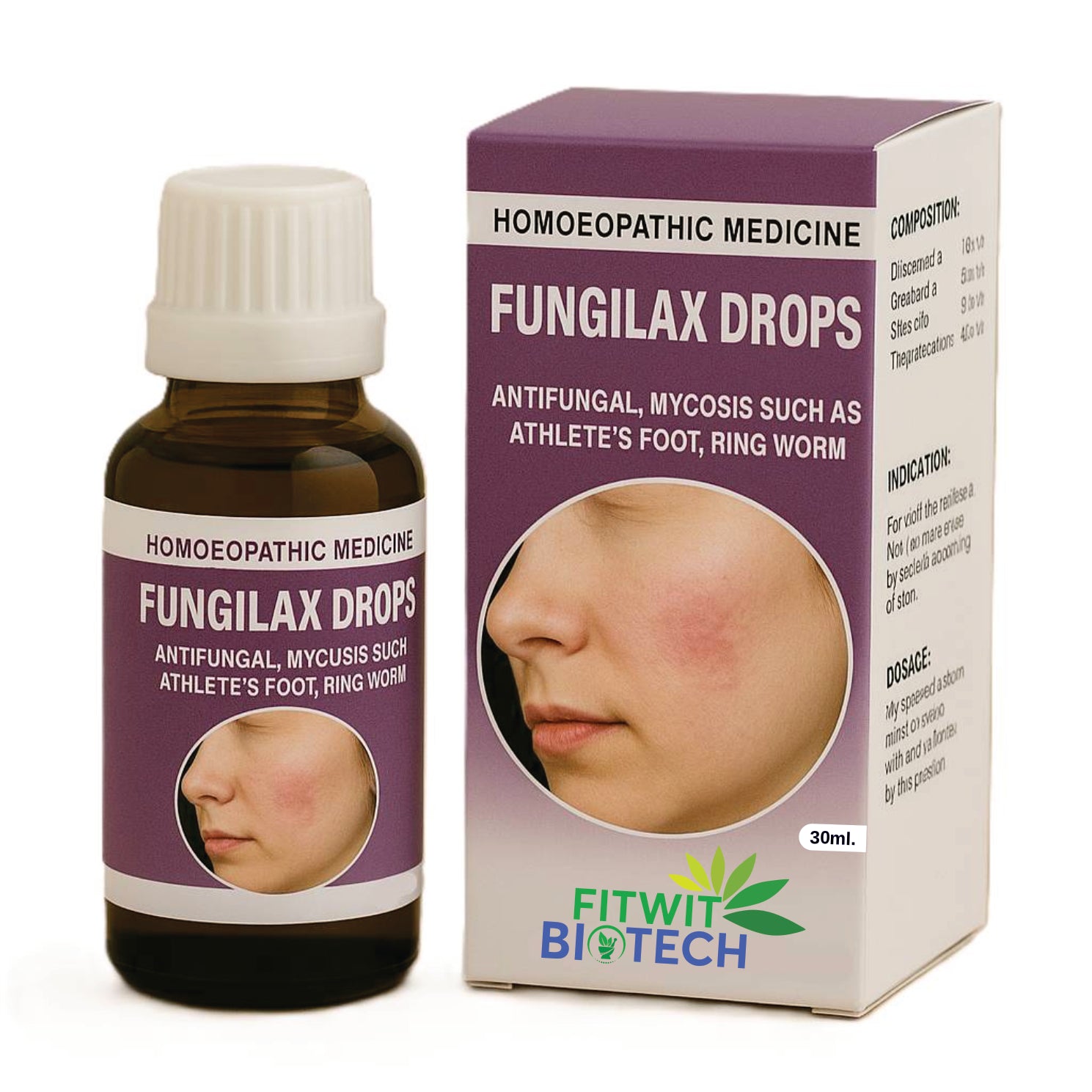 Regular price Rs. 160.00Sale price Rs. 160.00 Regular priceUnit price perSale Sold outFitwit Biotech's Homeopathy Medicine Fungilax drops to prevent the skin from turning dark while it reduces the redness and irritation on the skin.
