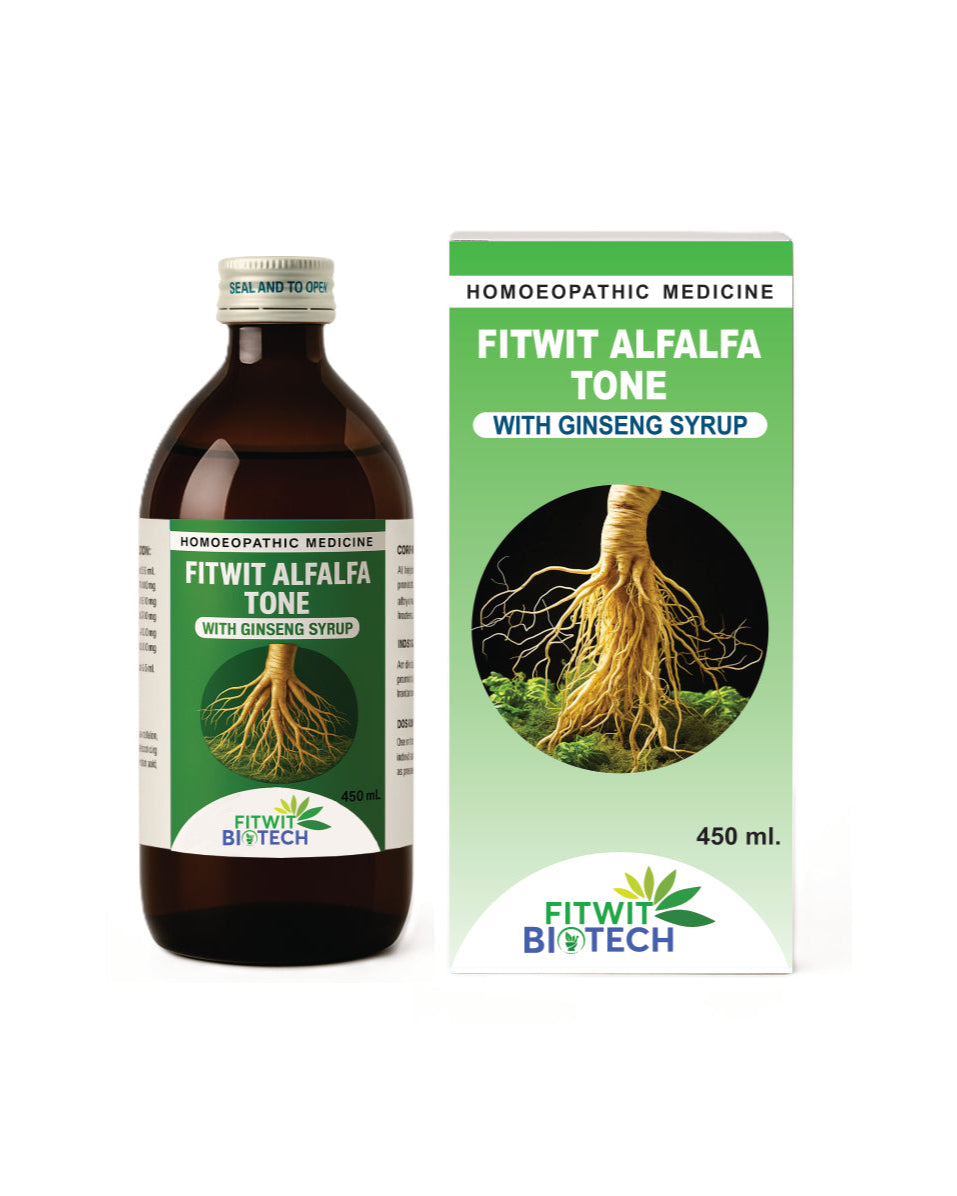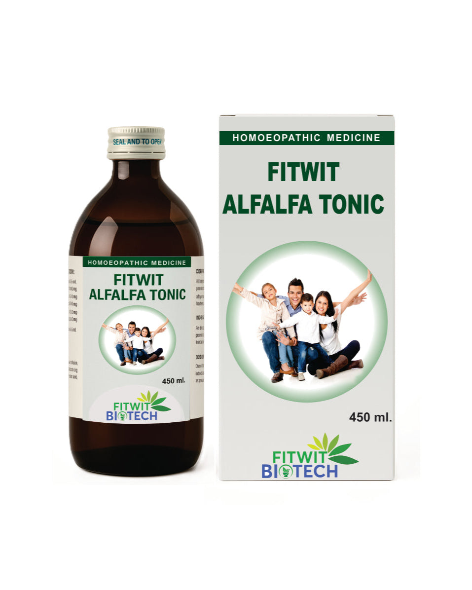 Regular price From Rs. 113.00Sale price From Rs. 113.00 Regular priceUnit price perSale Sold outFitwit Alfalfa Tonic Very Effective General Family TonicAvailable in: 115 ml & 450 ml bottles Product Description: Fitwit Alfalfa Tonic is a comprehensive family health tonic...