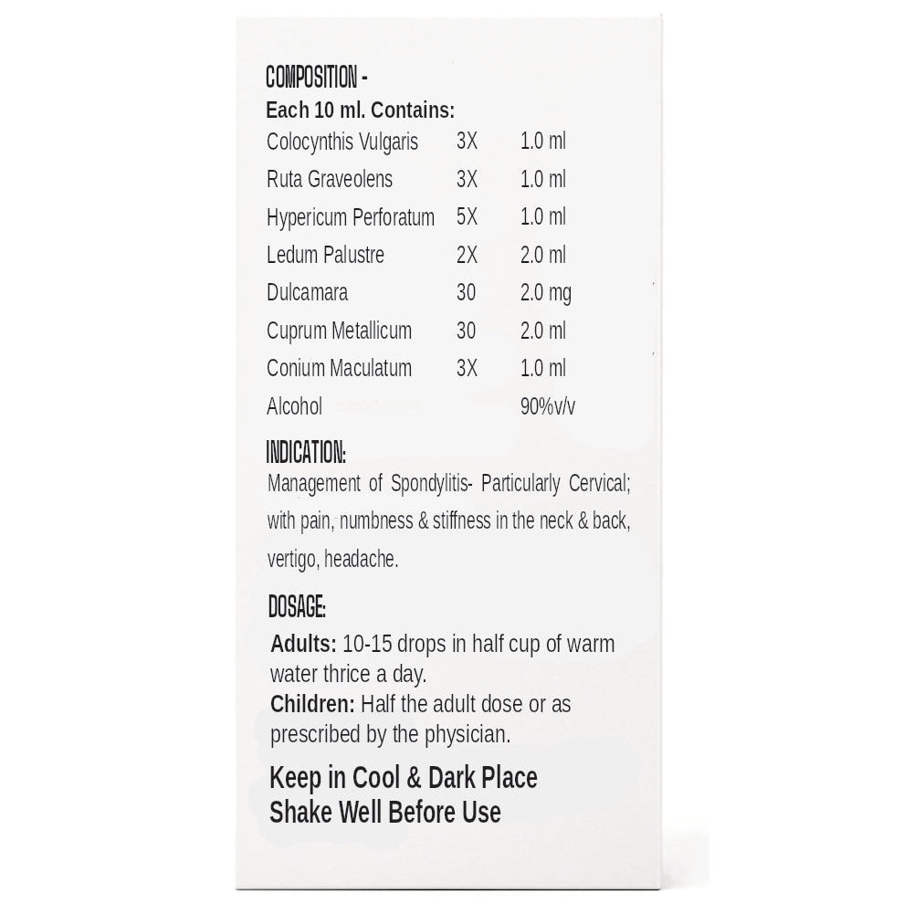 Fitwit Spondi-Lax Drops is a powerful remedy for patients suffering from spondylitis. The specialist ingredients act well on shooting, cutting, intermittent pain in bones, joints, muscles and tendons by acting on nerve ending releasing their compression and inflammation.